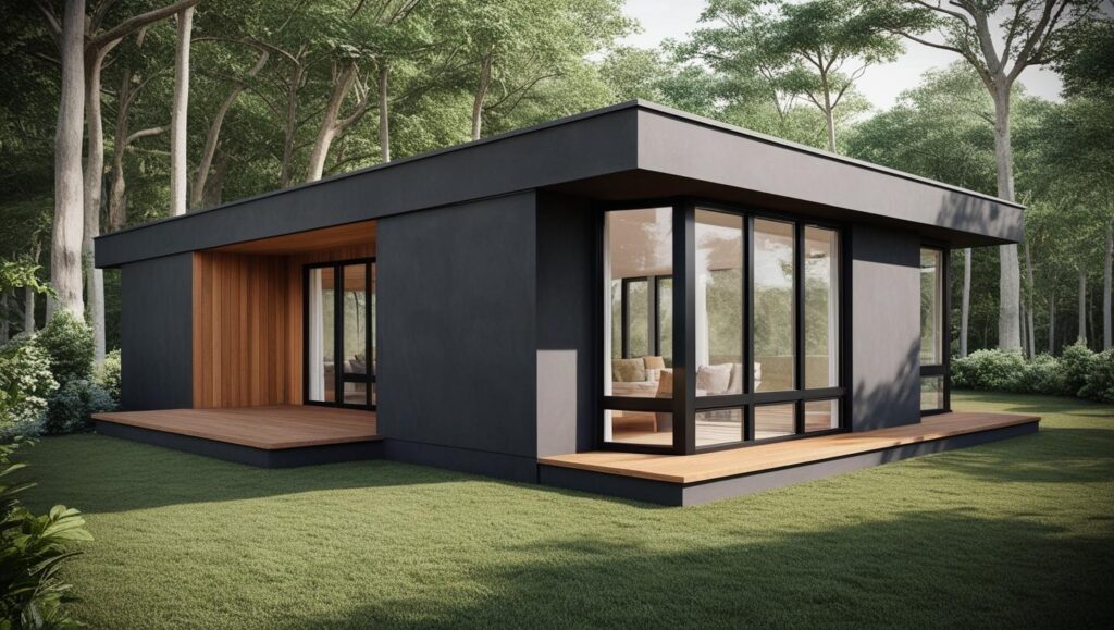 Mira to nowoczesny domek modułowy o wyjątkowo eleganckiej i minimalistycznej formie. Ciemna, matowa elewacja w połączeniu z naturalnym drewnem nadaje mu ponadczasowy charakter, a duże przeszklenia podkreślają przestrzeń i wprowadzają do wnętrza naturalne światło. Kompaktowa bryła o przemyślanej geometrii doskonale komponuje się z otoczeniem, tworząc harmonijną całość. Mira to idealny wybór dla osób ceniących prostotę, styl i wysoką jakość w każdym detalu.