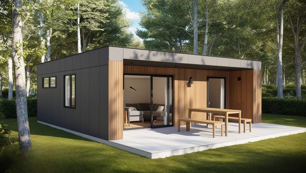 Tuluza to nowoczesny domek letniskowy modułowy, który łączy minimalistyczny design z wysoką funkcjonalnością. Jego prosta, geometryczna bryła wzbogacona została o eleganckie drewnopodobne akcenty i duże przeszklenia, które otwierają wnętrze na otaczającą naturę. Dzięki technologii modułowej Tuluza powstaje szybko i bezproblemowo, a solidna konstrukcja gwarantują trwałość i doskonałą izolację.