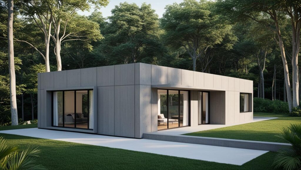 Sparta to parterowy domek modułowy w minimalistycznym stylu. Jasna elewacja, duże przeszklenia i nowoczesna forma tworzą idealny dom dla osób ceniących spokój, przestrzeń i światło.