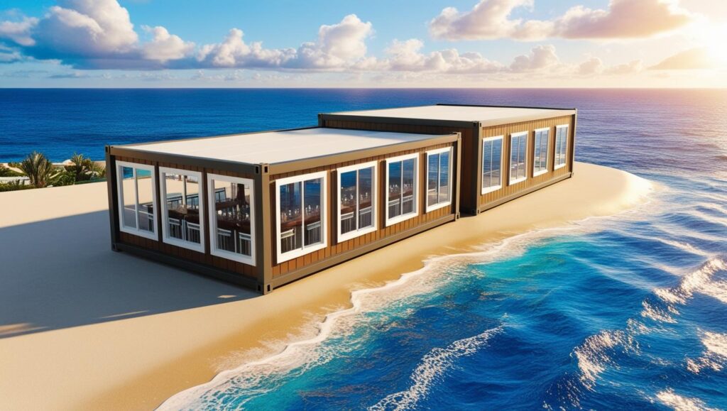 Model 15 to imponujący pawilon modułowy o wydłużonej bryle, zaprojektowany z myślą o lokalizacjach premium – takich jak promenady, plaże, przystanie czy strefy rekreacyjne. Jego nowoczesna, przeszklona konstrukcja z panoramicznymi oknami pozwala w pełni wykorzystać widok na otoczenie, tworząc niepowtarzalny klimat przestrzeni nadmorskiej. To idealne rozwiązanie dla restauracji, barów lub punktów usługowych, które chcą wyróżnić się nie tylko funkcjonalnością, ale również architekturą przyciągającą uwagę klientów. Model 15 łączy trwałość stalowej konstrukcji, energooszczędność technologii modułowej i wyjątkowy design inspirowany naturą.